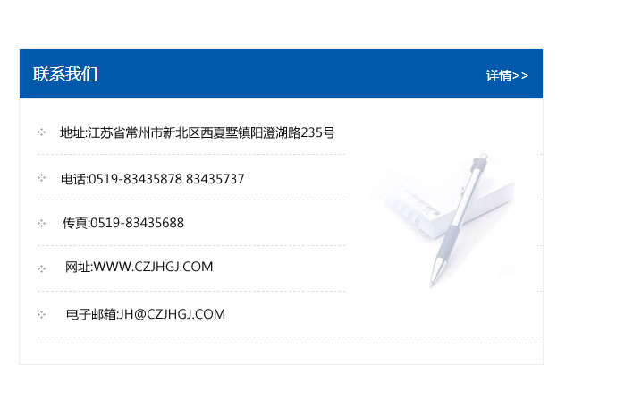 傳真:0519-83435688    郵編:213135    網址:WWW.czjhgj_com.yushangwh.com    電子郵箱:JH@czjhgj_com.yushangwh.com